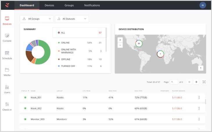- Kompatibel mit unterschiedlichen Geräten: Displays, Kioske, Tablets, Videowände, digitale Info-Boards und mehr